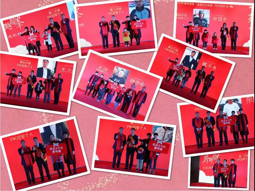 隨后,華興公司對(duì)2018年四季度PK賽各小組冠軍,小組冠軍個(gè)人及家屬、超額獎(jiǎng),研發(fā)創(chuàng)新獎(jiǎng),年度總冠軍團(tuán)隊(duì)等獲獎(jiǎng)團(tuán)隊(duì)和個(gè)人一一兌現(xiàn)承諾,董事長冀葉軍親自為每個(gè)獲獎(jiǎng)團(tuán)隊(duì)和個(gè)人頒獎(jiǎng);同時(shí)小組冠軍個(gè)人及家屬還獲得公司提供的北京3-5日豪華游!
