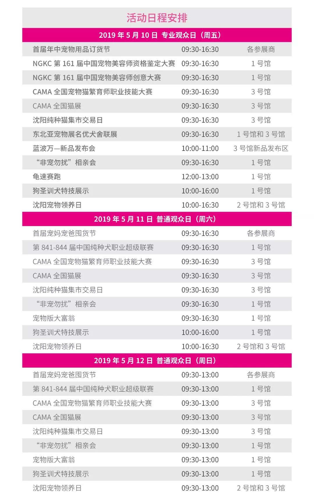 亮點(diǎn)六:同期召開(kāi)豐富的配套活動(dòng),如:NGKC犬賽、NGKC美容師大賽、中國(guó)寵物狂歡節(jié)(沈陽(yáng)站)、中國(guó)寵品特賣(mài)會(huì)、名犬展、名貓展、921狗狗運(yùn)動(dòng)會(huì)、愛(ài)心領(lǐng)養(yǎng)日、最美萌寵評(píng)選等人寵互動(dòng)活動(dòng)