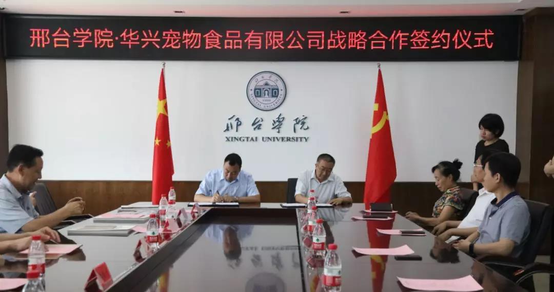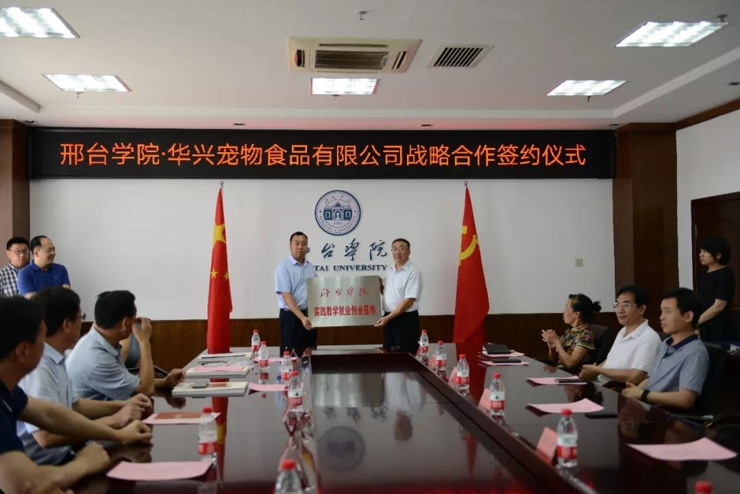 上午11時30分整,華興寵物食品有限公司總經(jīng)理冀葉軍與邢臺學(xué)院校長蔡振禹在戰(zhàn)略合作書上簽字,隨后由蔡校長代表邢臺學(xué)院進行授牌儀式,授予華興寵物食品有限公司“實踐教學(xué)就業(yè)創(chuàng)業(yè)基地”,標(biāo)志著華興寵物食品有限公司和邢臺學(xué)院的戰(zhàn)略合作全面開始。