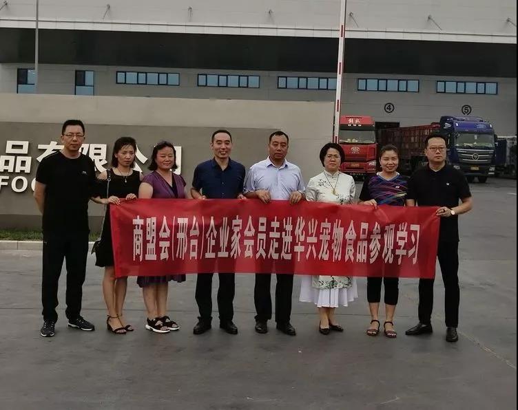 8月1日下午,商盟會(邢臺)企業(yè)家會員們來到了華興寵物食品有限公司參觀交流,華興總經理冀葉軍熱情接待并陪同參觀。