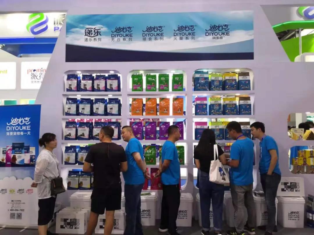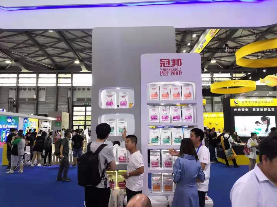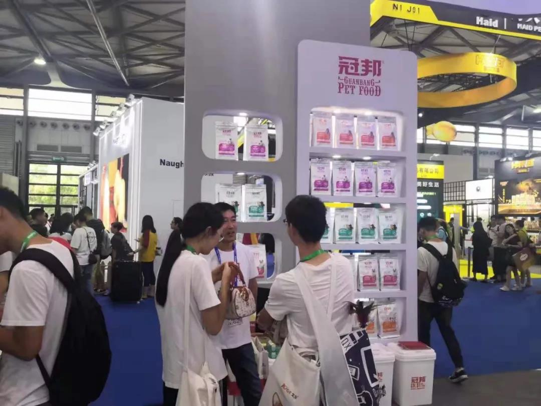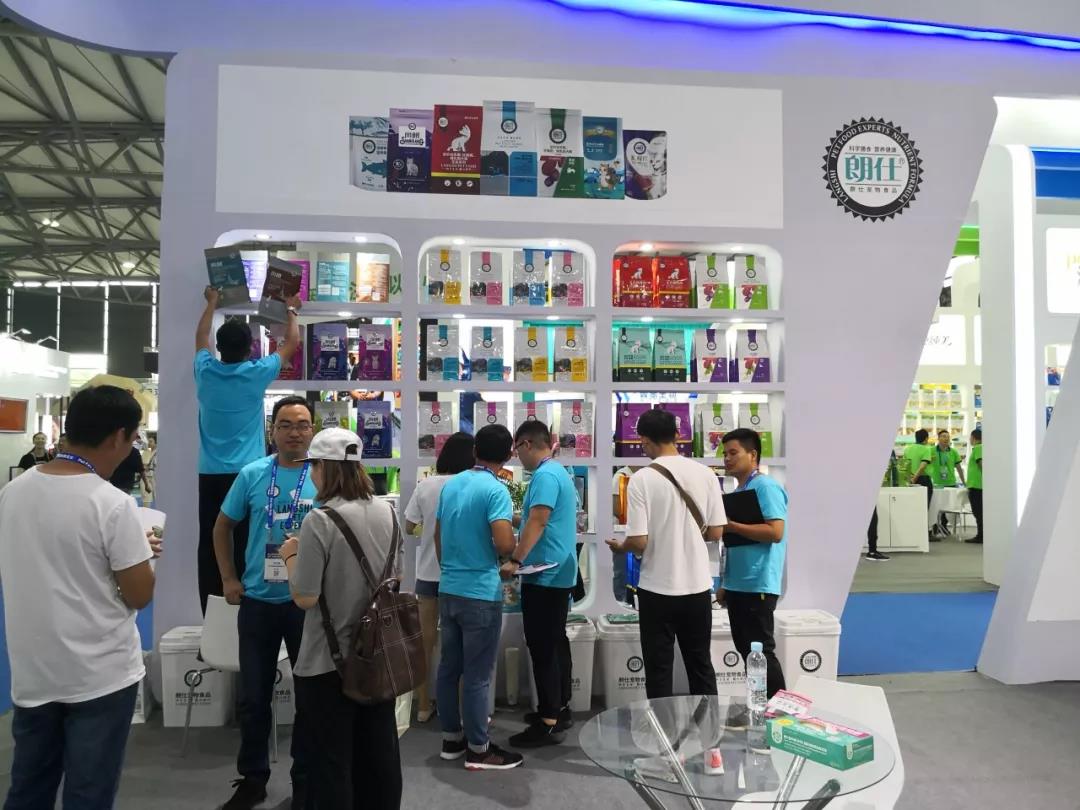 華興寵物食品有限公司的展位N1H51前,迎接著一批批來自全球各地的客戶,熱鬧非凡。
